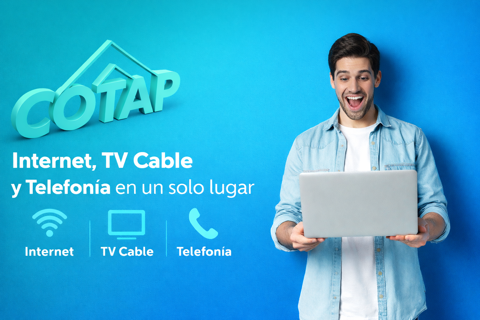 “Internet, TV, Telefonía y Cotaphone en una sola conexión por fibra optica: más velocidad, más entretenimiento y más comunicación para tu vida diaria.”